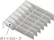 グレーチング内部にガイドスロープを設けることで負圧が発生し、雨水をスムーズに引き込みます。
