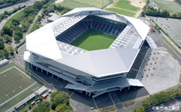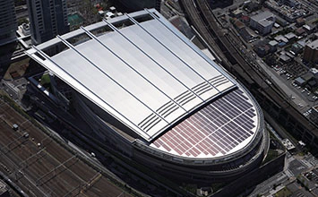 自社製の屋根・壁材を使用し、様々な場所で建築物の施工に携わっています。素材の開発から施工まで手掛ける一貫体制が強みで、市立吹田サッカースタジアム、甲子園球場や、さいたまスーパーアリーナなど大型プロジェクトの実績も豊富です。