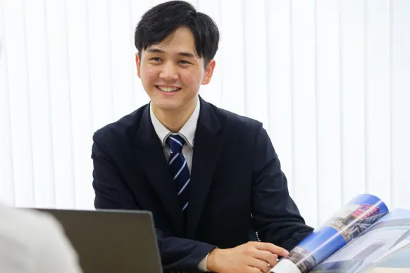 営業職を志望し、業界を限定せず幅広く企業を検討していました。ヨドコウを知ったのは、大学のキャリアセンターからの紹介がきっかけです。歴史ある上場企業としての安定性に魅力を感じましたし、セレッソ大阪のスポンサー企業として名前を知っていたことから、社会的に信頼のある会社だという印象も持っていました。さらに、父が鉄鋼関連の仕事に関わっていたこともあり、ヨドコウの名前を伝えたところ、家族に安心してもらえたことも決め手の一つに。面接では圧迫感がなく、自分の考えを自然体で話せる雰囲気があり、「ここでなら周囲と協力しながら成長できそうだ」と感じました。