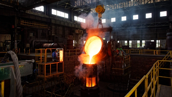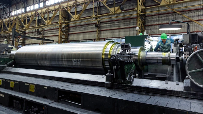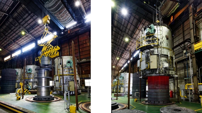 鉄をはじめ、紙やゴム、プラスチックの製造業に不可欠なロール。一般にはなじみのない世界ですが、当社はこうした巨大精密ロールの分野でも、わが国屈指のメーカーとして知られています。なかでも重さ70t、長さ12mにも達する製鉄用ワークロールは、世界最大級の遠心鋳造設備により鋳造され、熱処理、旋削、研削など他社の追随を許さぬ技術力の高さを誇っています。他にもドイツ・アンドリッツ・キュスタース社との技術提携による製紙用スイミングロールのように、製紙業界で高いシェアを誇る製品もあり、大阪工場から生まれるロールは各方面で活躍しています。