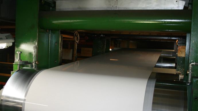 呉工場や市川工場で生産されためっき鋼板に最新鋭の連続式塗装設備でさまざまな塗装を施し、各種塗装鋼板を生産しています。塗装ラインでは、めっき鋼板の表面に密着性・耐食性を向上させるための前処理を行ない、その後3コート3ベーク方式で耐食性に優れた美麗な高級鋼板を生産しています。3コート3ベーク方式とは、塗装と焼き付けを3回行なうことを意味し、多彩な色や柄・ツヤ・質感など、高い意匠性を誇ります。こうして生産された塗装鋼板は、家電製品をはじめ家具や器物などに幅広く採用されています。