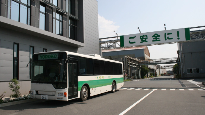 当工場は最寄駅から徒歩30分ほどかかるため、社用バス(無料)での通勤またはマイカー通勤となります。社用バスをご利用の場合は、JR西船橋駅から乗車(所要時間約20分)か、寮や社宅のある市川市柏井町から乗車(所要時間約40分)になります。