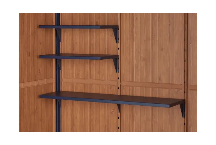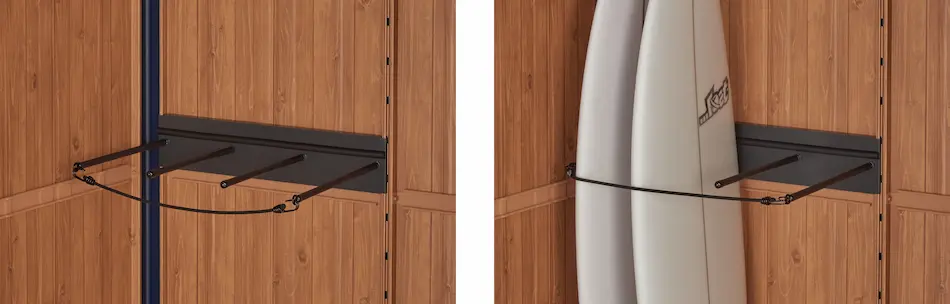 物置壁面に穴を開けずにお客様がご用意された有孔ボードやフックを取り付けることができます。