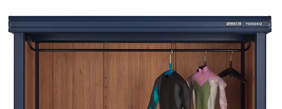 『KOTO OKI』とは「自然と遊ぶ人々のために、遊びのモノを収納する」をコンセプトに、ムラサキスポーツと当社が共同開発したストレージのシリーズ名です。『KOTO OKI』シリーズでは、使わなくなったものを保管する場所ではなく、サーフィンやスノーボードなどのアクションスポーツを楽しむ「自然と遊ぶ人々」が遊び道具を収納し、いつでも気軽に取り出せるデイリーユースの場所として、新たな収納スタイルのスタンダードアイテムの確立を目指しています。